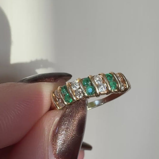 vintage 14k yellow gold diamond & emerald ring