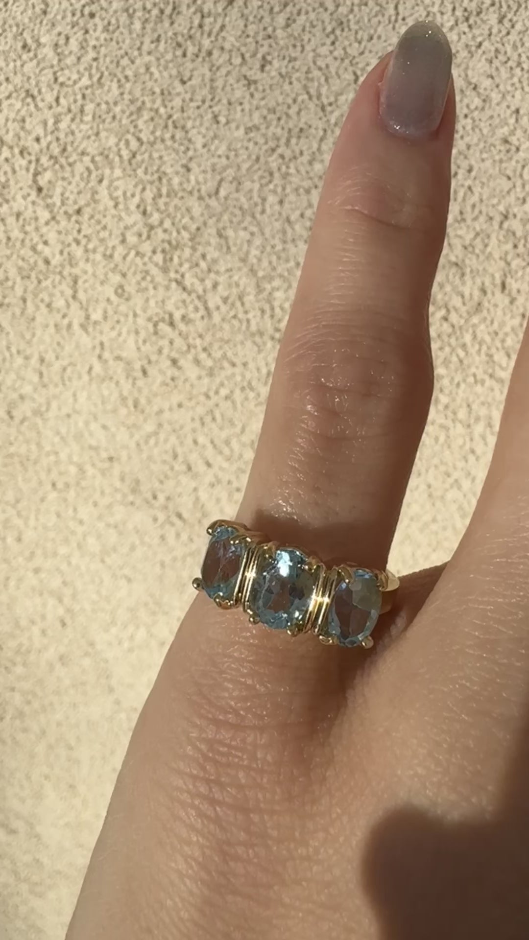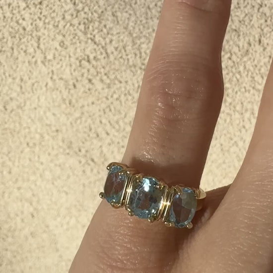 vintage 14k yellow gold trilogy blue topaz ring